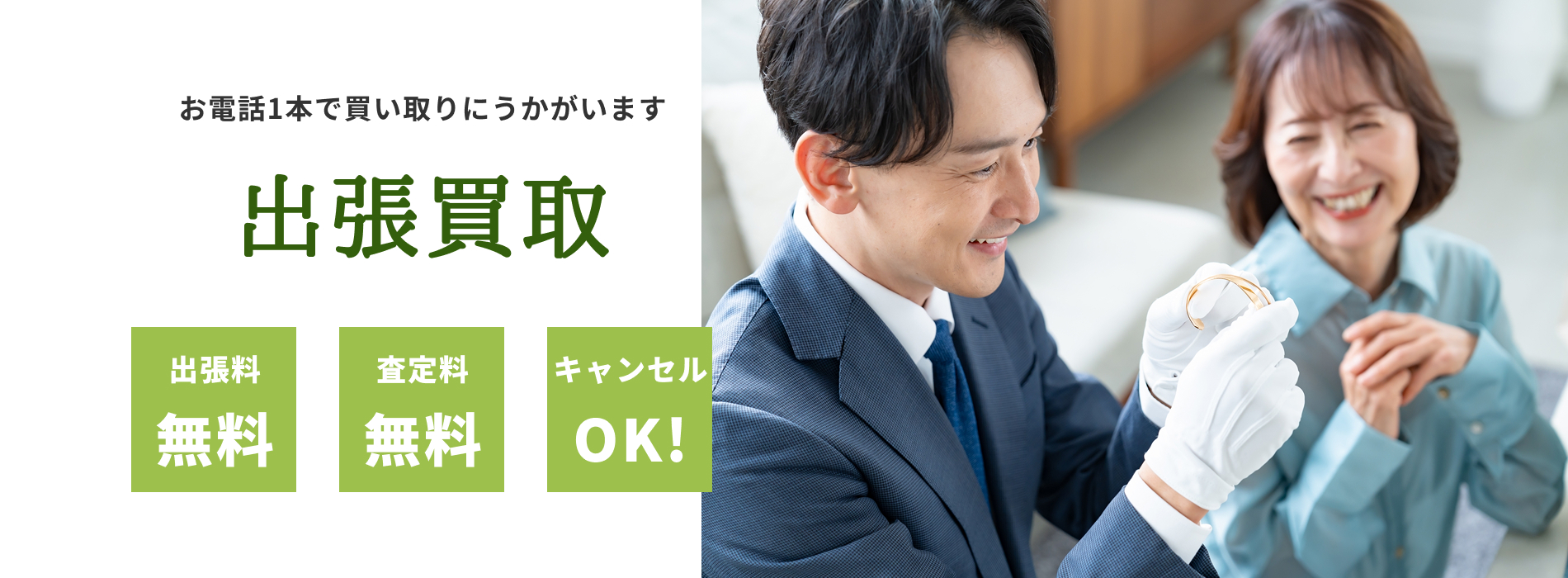 A. お品物の状況に関わらず、出張サービスをご利用いただけます。傷や壊れてしまっているものでも、高額な買取金額となったケースもございますのでご安心してお問い合わせください。もし、お申込み前に懸念が残るということであれば、お電話でおおよその査定額を提示することも可能でございます。